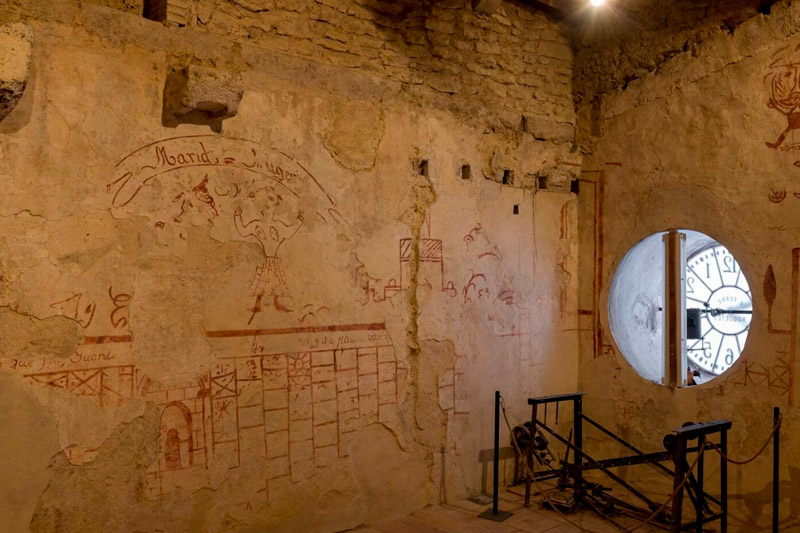 La torre tiene un reloj del que se conserva la maquinaria y que es el que marca la hora de Càlig. Durante la restauración actual se han hallado pinturas en las paredes que explican el paso del tiempo desde la época