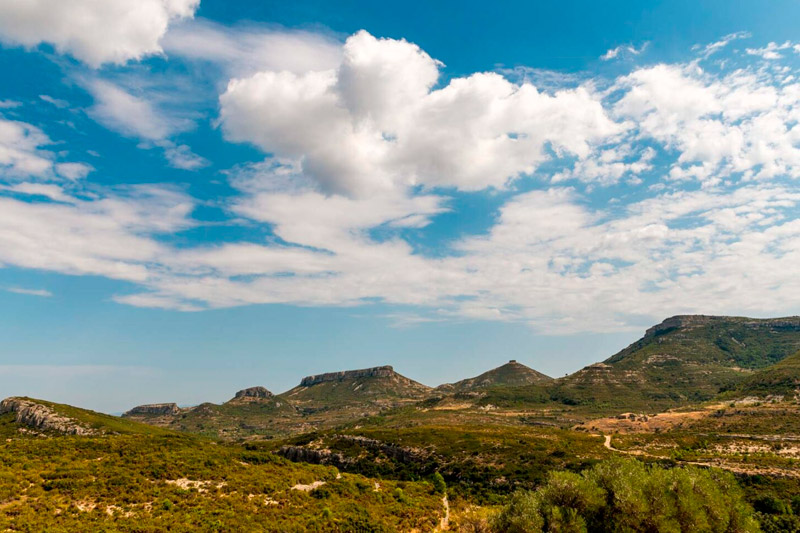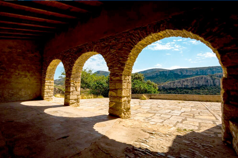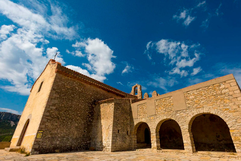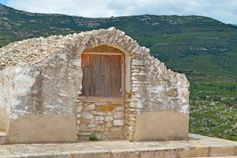 Se encuentra en una colina a una hora a pie de Xert, entre la sierra del Turmell y la Mola Murada.