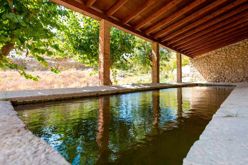 Al lado de la fuente hay una mesa de picnic y un pequeño aljibe al que se accede por unos escalones. A continuación están los lavaderos, que constan de una sola pila, enorme. Se ve que el recinto fue reconstruido y cubierto con un tejado inclinado.