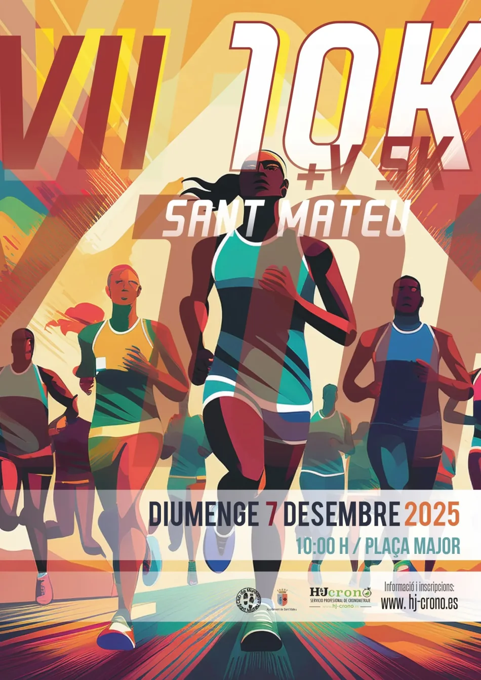 El diumenge 7 de desembre de 2025 a les 10 hores, la Plaça Major de Sant Mateu es convertirà en punt de trobada per a esportistes, famílies i amants de la cultura amb motiu de la VII Edició del 10K & 5K de Sant Mateu.