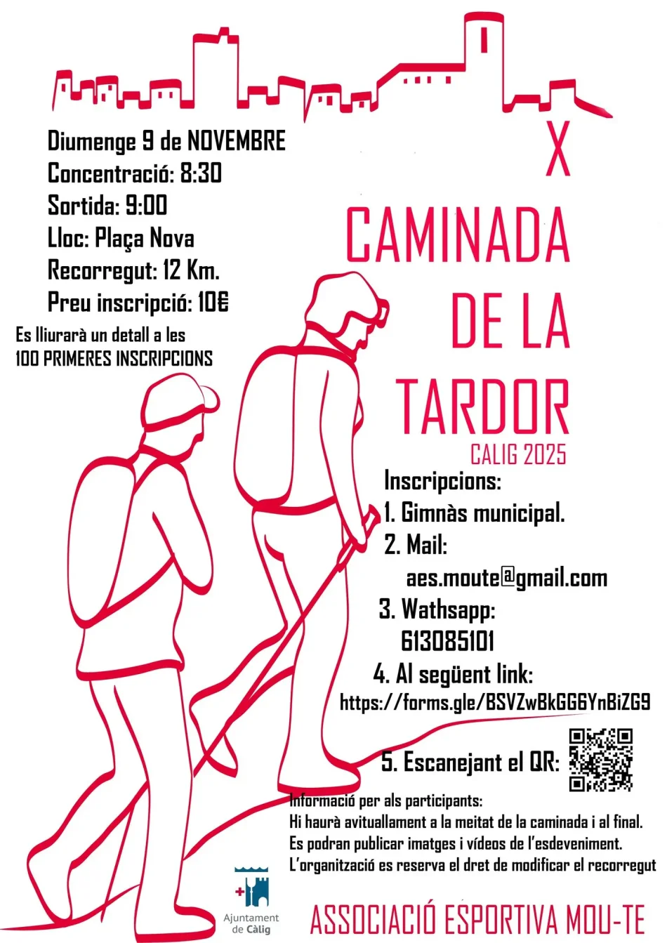 Des de l’Ajuntament de Càlig i l’Associació Esportiva Mou-Te es convida tota la població a participar en aquesta caminada popular, una manera fantàstica de gaudir de la natura, promoure hàbits saludables i compartir una jornada activa en família o amb amics.